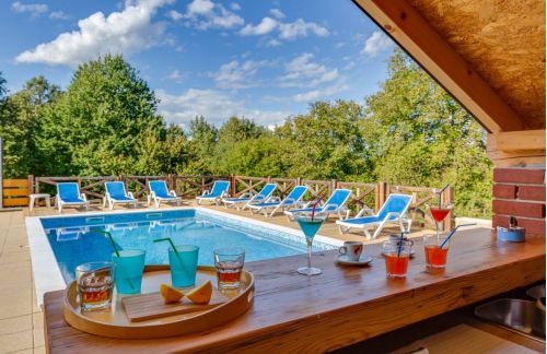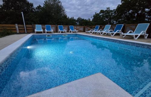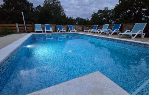 Ljeti vas vani očekuje veliki grijani bazen sa slanom vodom (9 m x 4,5 m) i sunčalište okruženo zelenilom.