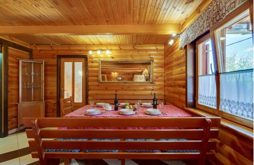 Dobro došli u Malu vilu Rebeka – drvenu kuću na uzvišenju malog sela, okruženu mirisnom prirodom, tišinom i pogledima koji opuštaju dušu. Izgrađena i uređena s puno volje, truda i ljubavi, vila je u potpunosti drvena i oplemenjena toplim, modernim namještajem. Posebna pažnja posvećena je udobnosti, privatnosti i potpunom komforu – kako biste se osjećali kao kod kuće, ali i kao na pravom odmoru.