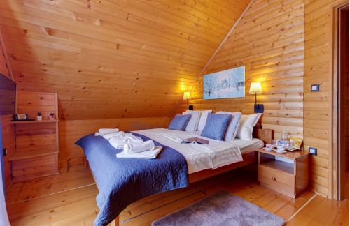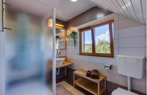 Naš mali gorski wellness centar nudi finsku saunu za 4-6 osoba, hidromasažni bazen za 6 osoba, ležaljke za opuštanje i tuš zonu sa sanitarnim čvorom. Uz intimno osvjetljenje „zvjezdanog neba“ i opuštajuću glazbu, wellness je savršeno mjesto za reset tijela i duha. S terase wellnessa otvara se pogled na mirnu prirodu.
